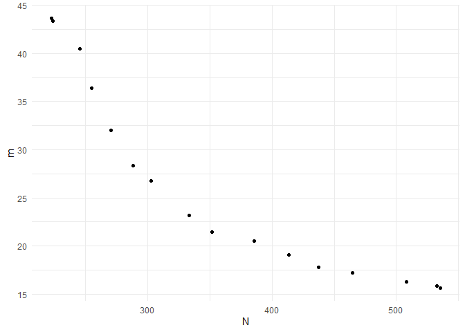 We have sixteen designs to choose from. For example, the final design in the set involves 288 patients and 28 clusters in each arm. The estimated power for that design is .
